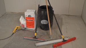 Adlers Main Tile & Carpet Co., LTD, consulted ARDEX for a cost efficient quick resolution. ARDEX Sales Professional Karl Hanley worked with the ARDEX Technical Department to develop a solution to address the high moisture readings and need for a level and flat floor in only one weekend. It was determined that ARDEX K 60™ ARDITEX latex leveling compound would be installed over ARDEX MC RAPID Moisture Control System. When installing ARDEX K 60 over ARDEX MC RAPID that has not been primed or sand broadcasted, the ARDEX K 60 must be installed within 8 hours of application of ARDEX MC RAPID. Because speed was of the essence to get this job done, this was the perfect solution. Adlers Main Tile & Carpet was impressed with the ease of mixing, pouring and placing ARDEX K 60 and has confidence in the, reliability of ARDEX products. The VCT and rubber flooring installers were impressed by how smooth and flat ARDEX K 60 prepared for the final installation.