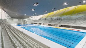The aquatic centre was completed on-time meeting the fast track schedule and the pools looked great for the 2012 Olympic water events.