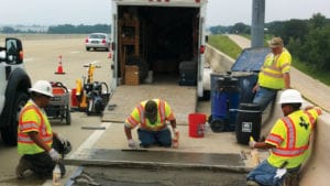 The prepared area, approximately 1/2” deep, was coated with ARDEX BACA™ Bonding & Anti-Corrosion Agent to allow for a strong and fast bond of the repair mortar to the existing concrete. ARDEX TRM™ Transportation Repair Mortar was screeded into the prepared section of the highway. ARDEX TRM allows foot traffic in 2 hours and vehicles in just 6 hours.
