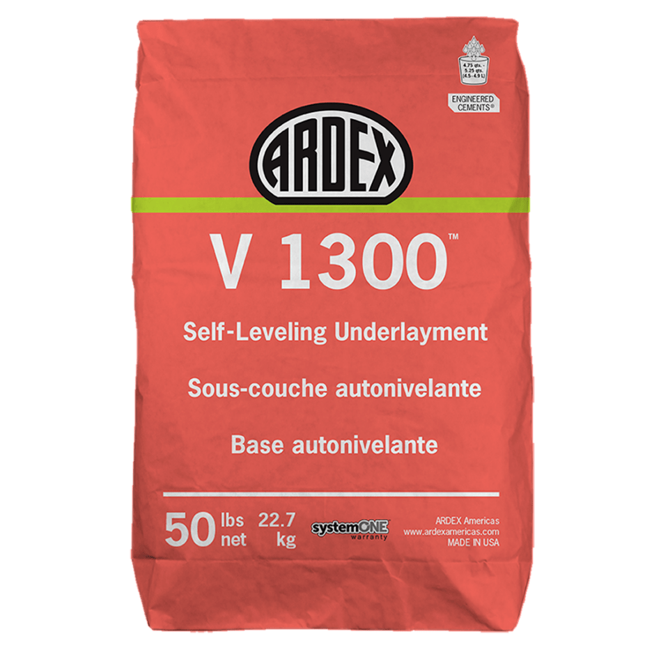 ARDEX V 1300™ Self-Leveling Underlayment is a high-performance, pourable or pumpable underlayment designed to level and smooth interior substrates before installing finished flooring. It delivers exceptional flow, strength, and versatility with a variable water ratio for optimal coverage and handling. Suitable for use over concrete, wood, terrazzo, and properly prepared non-porous surfaces, it creates a smooth, durable base for a wide range of floor coverings in dry, interior environments.