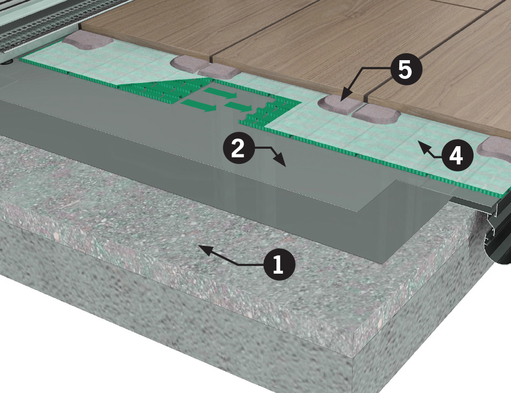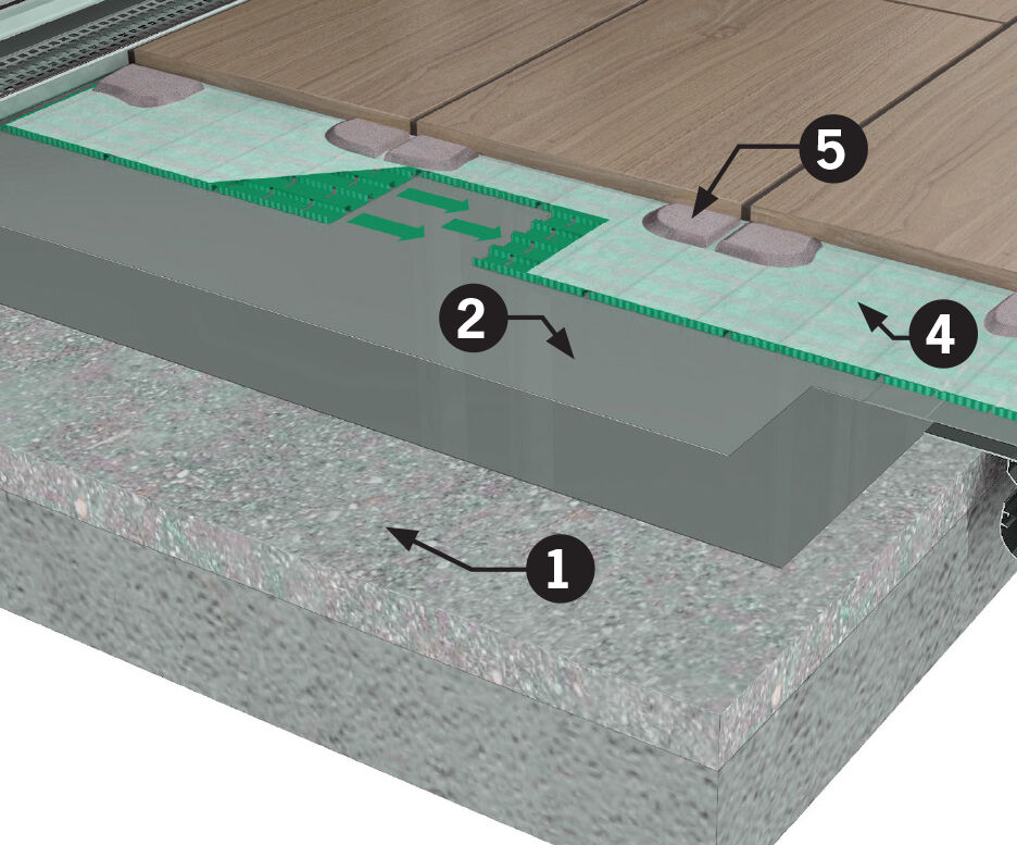 A time tested, comprehensive passive capillary drainage system for the installation of 3/4” (2 cm)+ porcelain tile or pavers. Ideal where minimal construction elevation requirements are required.