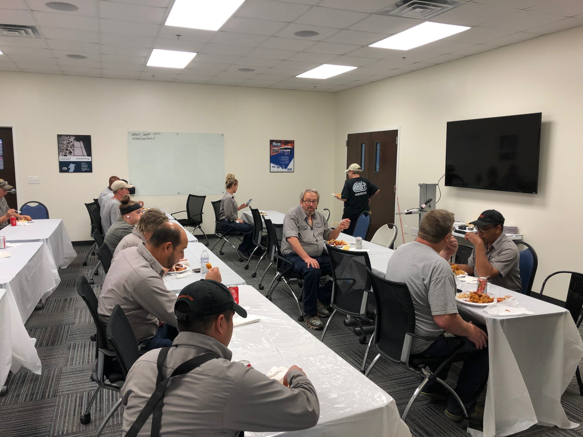 The ARDEX Americas plant in Dallas, Georgia, just reached an important safety milestone: four years without an OSHA recordable incident. The team of about 25 employees celebrated with a southern shrimp luncheon. The plant, which produces both powders and adhesives, also celebrated over 10 years without a lost time incident. It was a job well done, demonstrating ARDEX’ commitment to safety in the workplace.